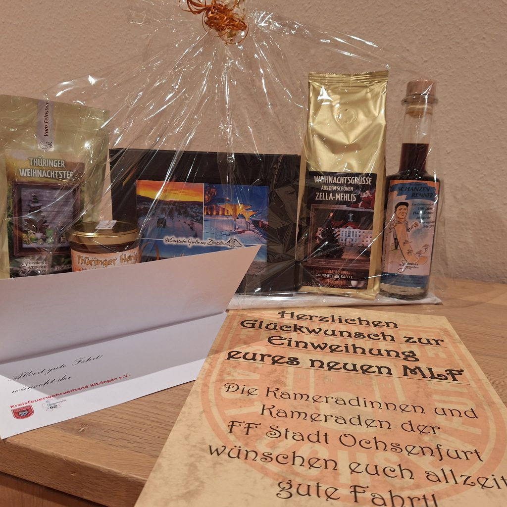 Danke an den Kreisfeuerwehrverband Kitzingen e.V., Freiwillige Feuerwehr Ochsenfurt und Feuerwehr Zella-Mehlis – Stützpunktfeuerwehr für die Teilnahme an der Festveranstaltung und die überreichten Gastgeschenke.