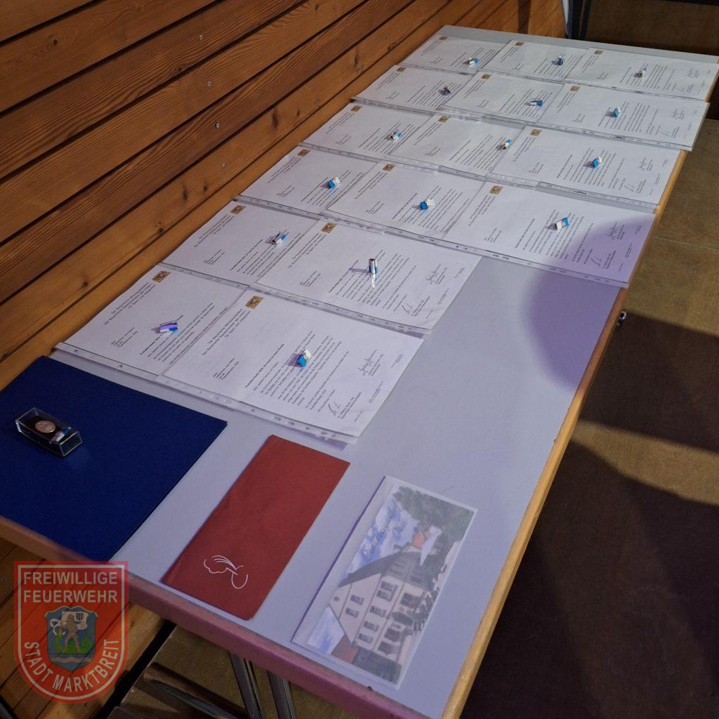 Im Anschluss standen dieses Jahr zwei Ehrungen für 25 Jahre an, hier wurden Beate Müller und Sabine Panzer für den langjährigen aktiven Dienst geehrt. Außerdem wurden für 8 Kameradinnen und Kameraden die Fluthelferabzeichen für das Jahr 2024 verliehen.