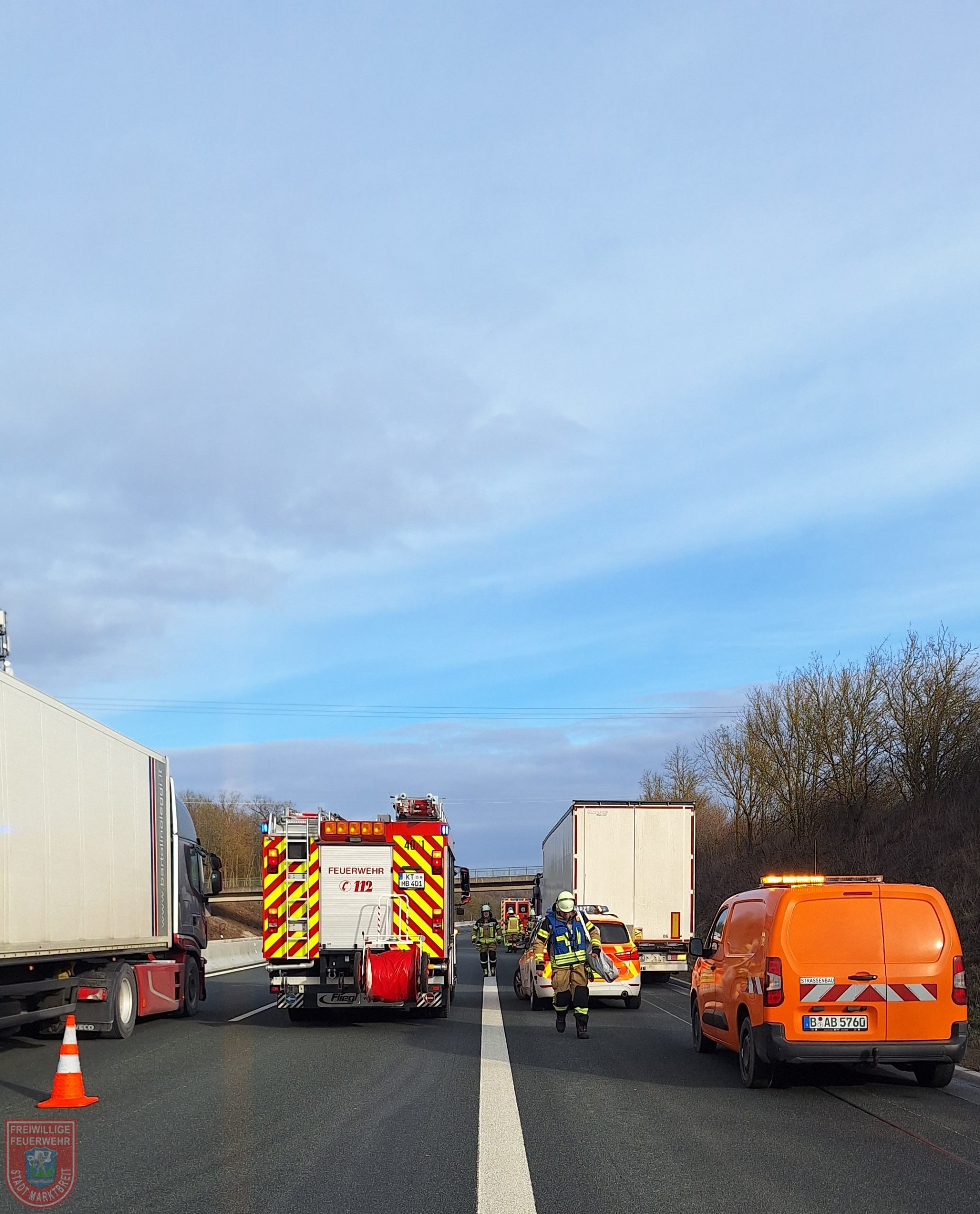Zu einem gemeldeten Verkehrsunfall auf die BAB 7 Marktbreit Richtung Kitzingen mussten wir am Aschermittwoch ausrücken.