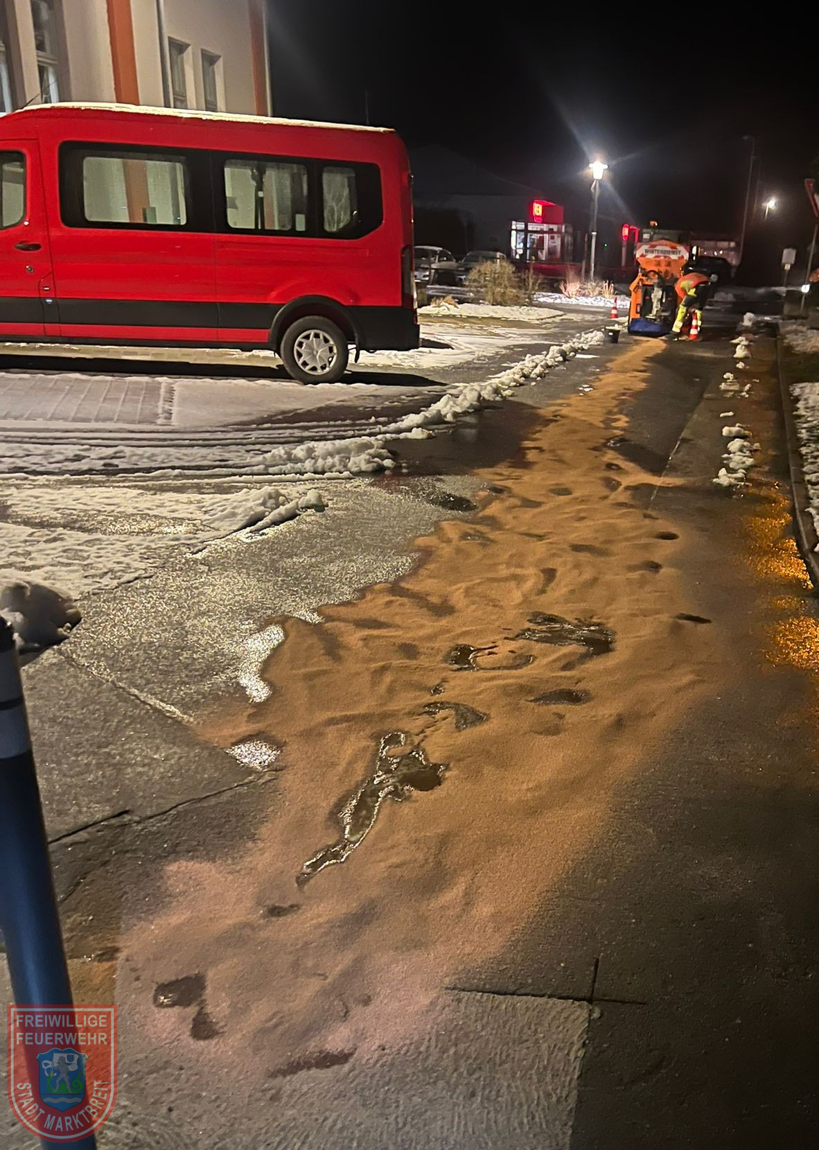 In der Hafenstraße mußte eine größere Ölspur abgestreut werden. Die Mitarbeiter des Bauhofes und einige Feuerwehrmitglieder konnten die Verunreinigung zügig abarbeiten.