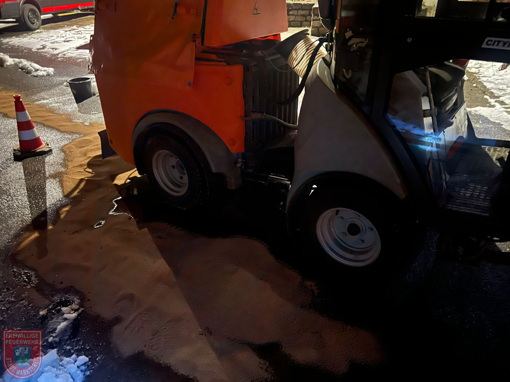 Beim Winterdienst löste sich der Hydraulikölschlauch der Kehrmaschine des Bauhofes.